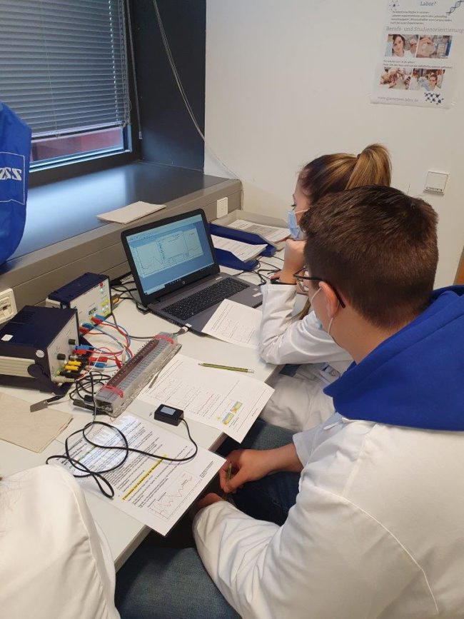 Im Rahmen des Biologieunterrichts absolvierte die Klasse 12 am 08.12.2021 den Laborkurs „Neurone und Gliazellen“ im Gläsernen Labor in Berlin-Buch. An zehn verschiedenen Stationen konnten Experimente rund um das Thema Neurobiologie durchgeführt werden. So wurden gruppenweise z.B. Membranpotenziale gemessen, Geschwindigkeiten von Impulsweiterleitungen bei Regenwurm und Mensch ermittelt und miteinander verglichen sowie Lerneffekte unter Nutzung einer…