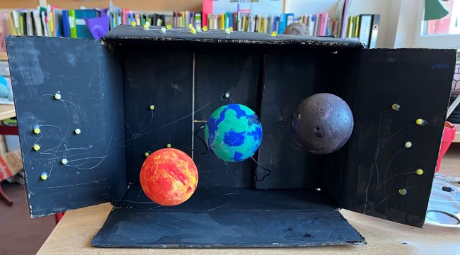 Passend zu unserem neuen Thema: „Die Sonne als Energiequelle“ im NAWI-Unterricht, haben wir uns mit der Sonnen- und Mondfinsternis beschäftigt. Die Schülerinnen und Schüler der Klasse 5 haben hierfür verschiedene Modelle in Kleingruppen gebaut.