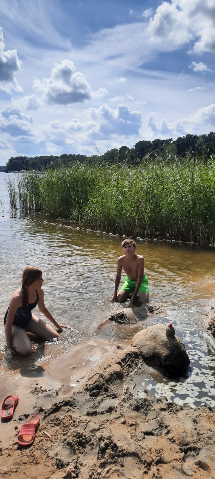 Zwischen Ballspielen, besonders beliebt war Ball über die Schnur, einem Kinoabend, Bastelnachmittagen, Baden und einer Nachtwanderung,