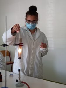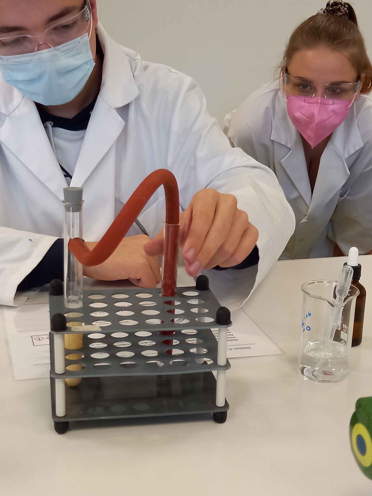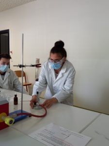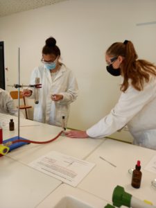 Die Klasse 13 hat im Rahmen der Projektwoche das Projekt „Fit fürs Abi“ besucht. Hier wurden ausgewählte Themen und Methoden relevanter Abitur- und Prüfungsfächer aus dem mathematisch-naturwissenschaftlichen sowie aus dem wirtschaftlichem Bereich gefestigt und intensiviert. Im Chemieteil des Projekts blieb es dabei nicht bei der Theorie, sondern stand die Praxis im Vordergrund. So wurde u.a. eine Batterie gebaut, die Stoffmengenkonzentration einer sauren Lösung bestimmt und eine Chloralkalielektrolyse durchgeführt. Auch verschiedene Nachweisreaktionen standen auf dem Programm.