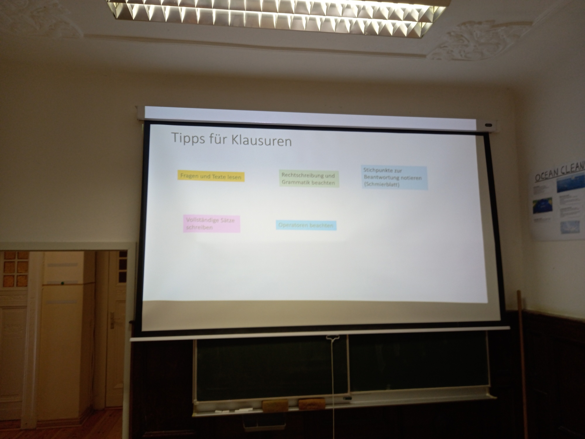 Im wirtschaftlichen Teil des Projektes „Fit für’s Abitur“ gab es für die zwei Gruppen der Klasse 11 Operatoren und Tipps für Klausuren, damit die geistigen Kräfte richtig eingeteilt werden können. Zudem wurde die Methodik der Quellen- und Textanalyse mit Hilfe von „Schokolade“ und „Spielekonsolen“ geübt. Zum Vergleich wurden in den Gruppen die Lieblingsschokolade und die vorhandenen Spielekonsolen erhoben, mit mehr oder weniger überraschenden Ergebnissen.