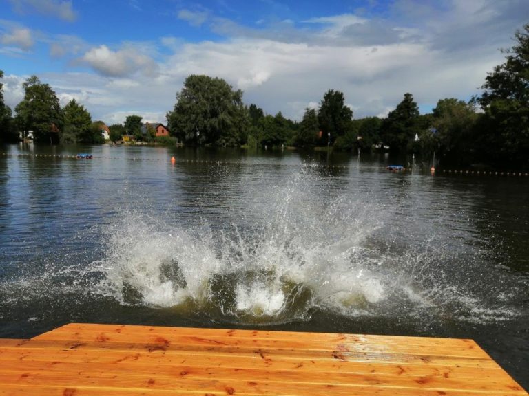 Trotz widriger Umstände und nicht perfektem Wetter gab es einige mutige Schülerinnen und Schüler der Klassenstufe 9, die sich in das Wasser getraut und sich das Schwimmabzeichen in Bronze oder Silber erschwommen, ertaucht und ersprungen haben. Ein Schüler hat sogar die Prüfung zum Schwimmabzeichen Gold bestanden.