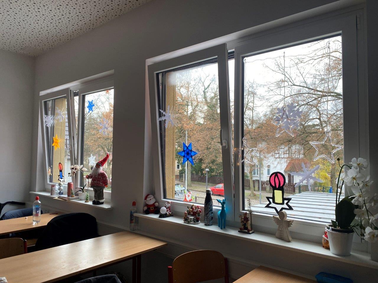 Die Weihnachtszeit ist auch in der Villa Elisabeth etwas ganz Besonderes. Die Schülerinnen und Schüler schmücken ihre Schule. Die Klassenräume sind festlich dekoriert. Auf dem Schulhof wird man durch eine weihnachtliche Atmosphäre begrüßt. Tannenbäume mit weihnachtlichem Schmuck und leuchtenden Ketten sorgen hier für eine besonders festliche Stimmung. Auf die Schülerinnen und Schüler warten im nächsten Monat noch einige weihnachtliche Projekte. Bis zu den Weihnachtsferien wird es also sehr festlich.