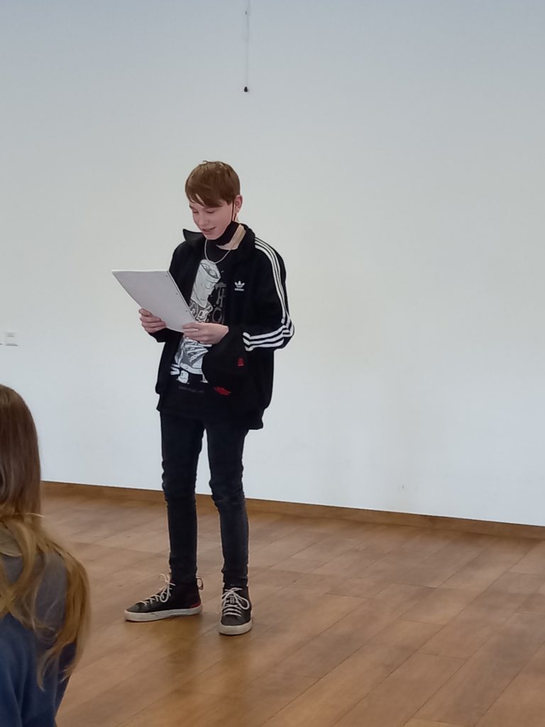 Am letzten Schultag vor den Osterferien hat unsere Klasse 7a ihrer Kreativität und ihrem schauspielerischen Talent freien Lauf gelassen. Die Schülerinnen und Schüler haben im Deutschunterricht die Balladen „Erlkönig“ und „Der Zauberlehrling“ von Johann Wolfgang von Goethe umgestaltet und in unserer Aula szenisch aufgeführt. Dabei entdeckten einige ihre Leidenschaft für das Theaterspiel sowie ihr gestalterisches Talent. Es war für alle ein tolles Erlebnis.