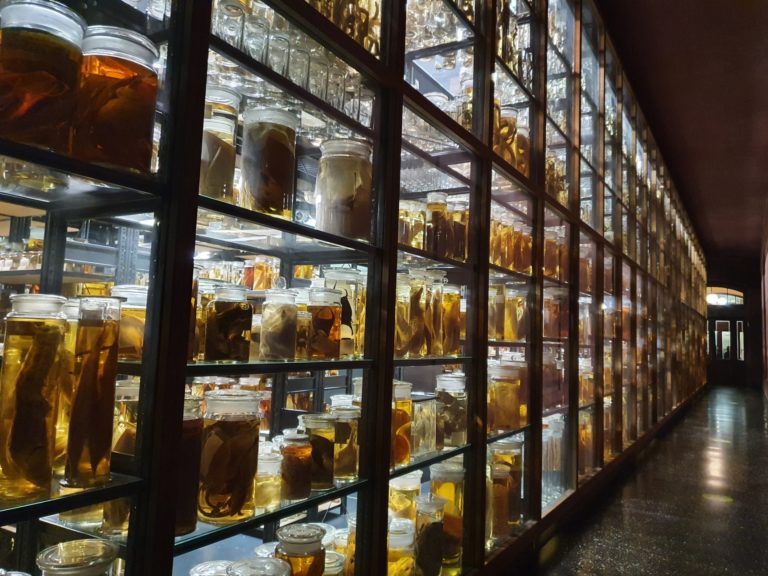 Im Anschluss an den Workshop war schließlich noch Gelegenheit, das Museum individuell nach eigener Interessenlage zu erkunden. Während es einige zu den Dinosauriern oder zum Eisbären Knut zog, waren andere von der Mineralienausstellung zu begeistern. Auch die Nass-Sammlung des Museums, in der viele in Alkohol konservierte Objekte in Gläsern aufbewahrt werden, erfreute sich großer Beliebtheit.