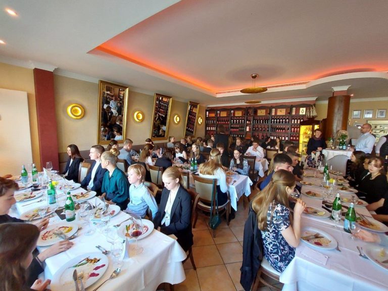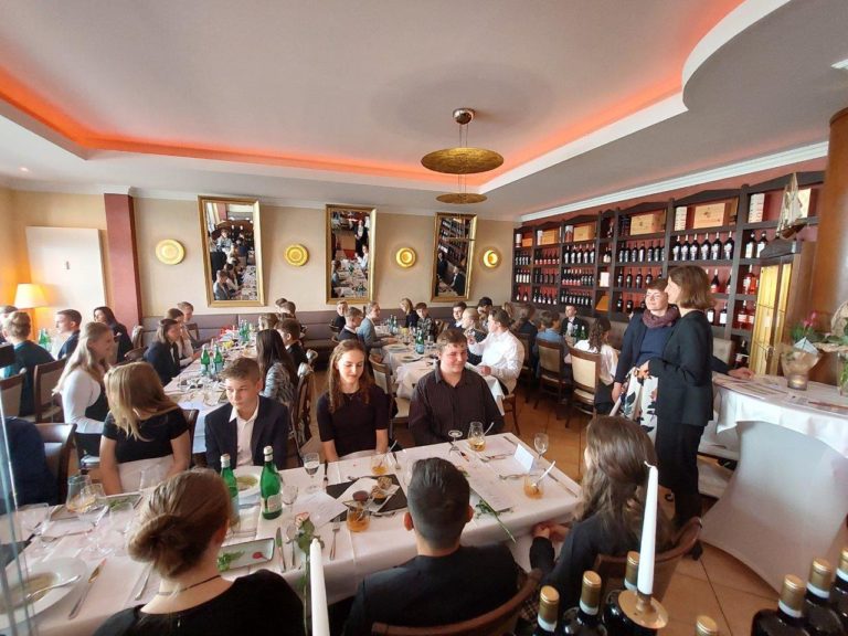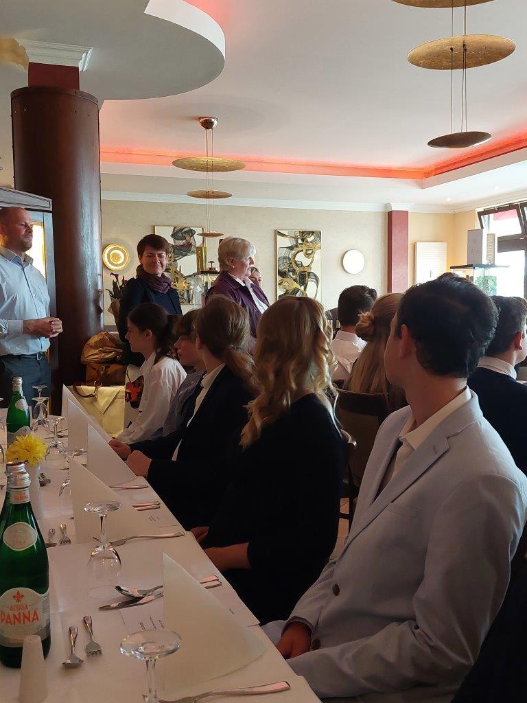 Die Schülerinnen und Schüler hatten zuvor im Rahmen des WAT-Unterrichtes die verschiedenen Regeln, Dresscodes usw. erarbeitet, nun ging es für sie zum Gala-Dinner ins Restaurant “Peperosa”.