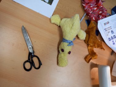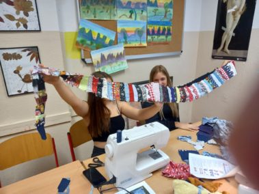 Die Schülerinnen und Schüler lernen das Nähen mit der Nähmaschine und das Wiederverwenden von gebrauchten Materialien, in diesem Projekt ist es die Jeans. Die Taschen, Tiere, Nähkissen usw. sind echt super geworden.