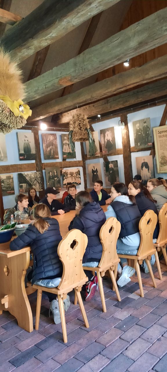 Am Donnerstag, dem 06.10., fuhren wir, die Klasse 8a, mit dem Zug nach Lübbenau. Mit dem Paddelkahn starteten wir zum „rum-GURKEN“. Nach einer Stunde auf der Spree gingen wir in Lehde vor Anker und an Land, wo uns der Gurkenexperte Harald-Gurke auf eine geschichtliche Reise zur Spreewaldgurke ins Museum mitnahm. Nachdem uns die Geheimnisse des Gurkeneinlegens anvertraut wurden, waren unser Können und Geschmack gefragt. Wir kreierten unsere eigene Gurkensorte für die Klasse.