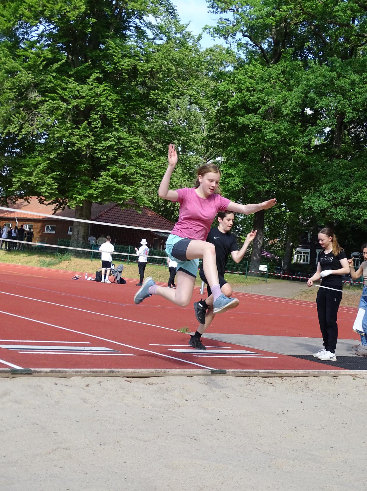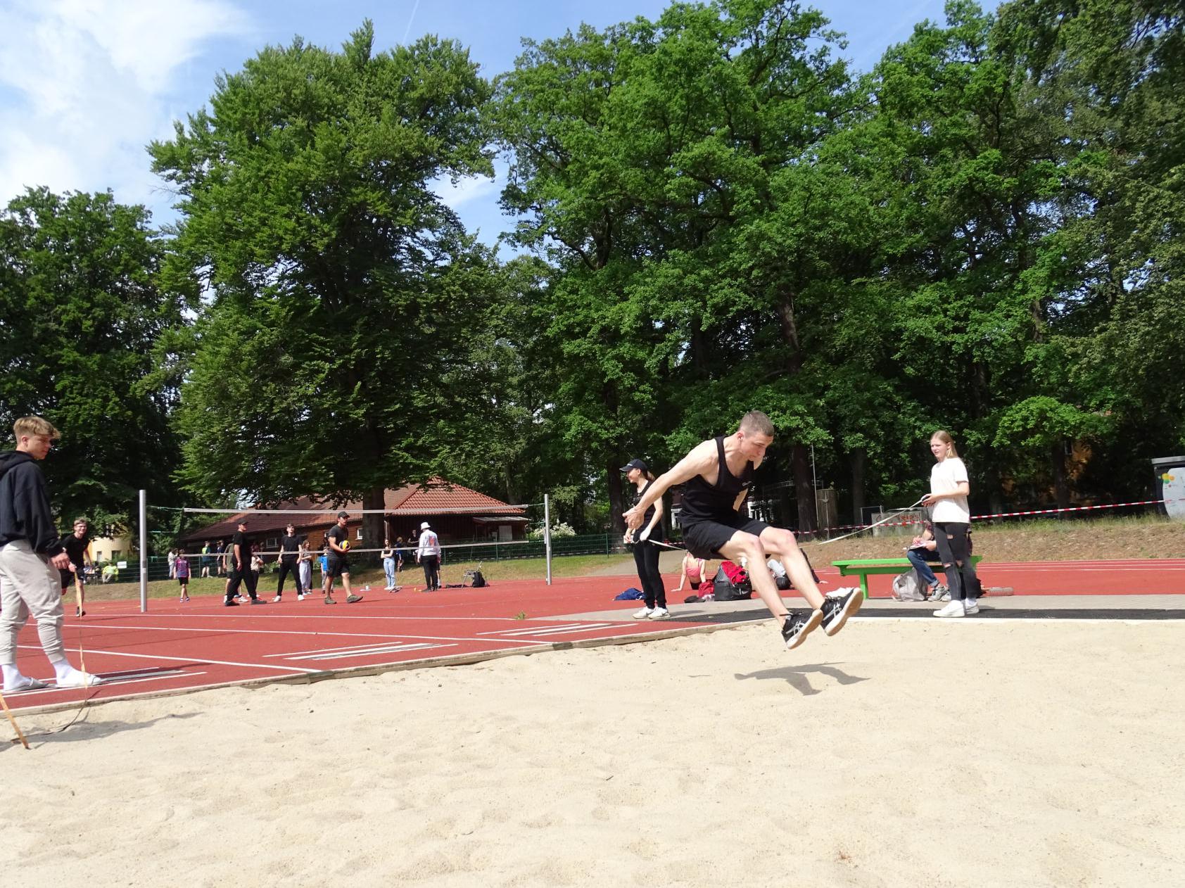 Eine große Unterstützung waren die Schülerinnen und Schüler der Jahrgangsstufen 11 und 12, welche die Rolle der Schieds- und Kampfrichter, Zeit- und Weitennehmer, Punktezähler und Motivatoren übernommen haben.