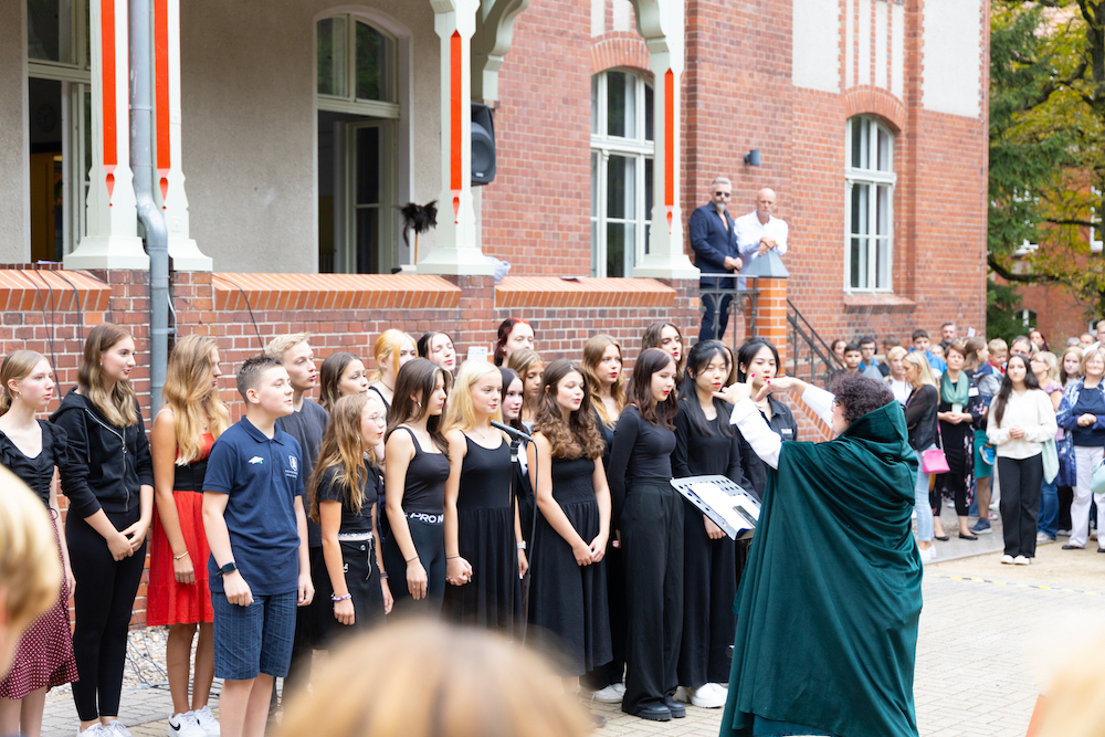Zur Begrüßung führte das Chor-Projekt eine kleine „Disney-Show“ auf. Wirklich beeindruckend, was die Schülerinnen und Schüler in nur drei Tagen unter der Leitung von Frau Kuczynski einstudiert haben. Im Schulgebäude konnten Auszüge aus den einzelnen Projekten der vergangenen Woche aller Privatschulen Villa Elisabeth bestaunt werden.