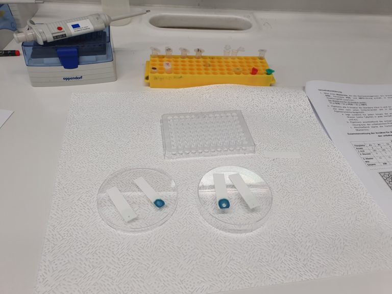Am 24. Februar 2023 besuchte die Klasse 11 die Technische Hochschule Wildau und absolvierte dort den Schülerlaborkurs „Glucose-Biosensor“. Nach einer theoretischen Einführung über verschiedene Möglichkeiten des qualitativen und quantitativen Nachweises von Glucose in Lösungen wurden die vorgestellten Methoden praktisch durchgeführt. Das Enzym Glucoseoxidase spielte für die Versuche dabei eine Schlüsselrolle. Es katalysiert die Oxidation von Glucose durch Sauerstoff. Die Umsetzung kann über eine anschließende Farbreaktion nachgewiesen werden. Auf diese Weise galt es z.B. Cola von Cola light zu unterscheiden und den Glucosegehalt einer unbekannten Probe mithilfe einer zuvor erstellten Eichkurve zu ermitteln. In einem dritten Versuch wurde schließlich über die Stärke der Sauerstoffabnahme während der Glucoseoxidase-Reaktion indirekt auf die Glucosemenge in einer Lösung geschlossen.