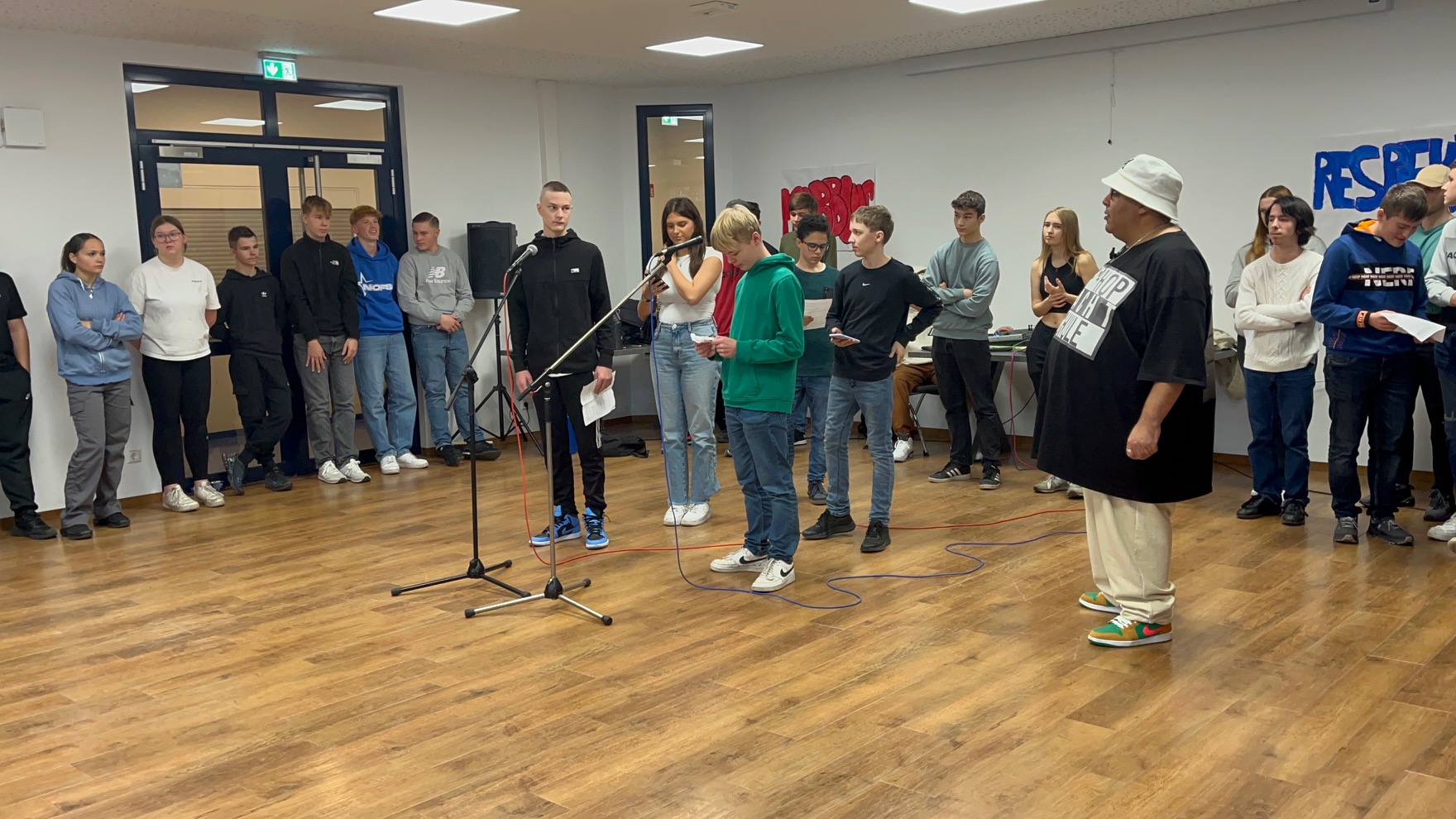Für unsere beiden 9. und 10. Klassen hieß es in dieser Woche “Hip Hop macht Schule”. In diesem Projekt wurden einige bisher verborgene Tanztalente, Texter und Rapper entdeckt. Mit viel Engagement und Herz arbeiteten die Schülerinnen und Schüler in fünf Tagen ein Programm aus, das am Freitag vor den Mitschülerinnen und Mitschülern und Lehrkräften präsentiert und mit viel Applaus, Anerkennung und Respekt belohnt wurde.