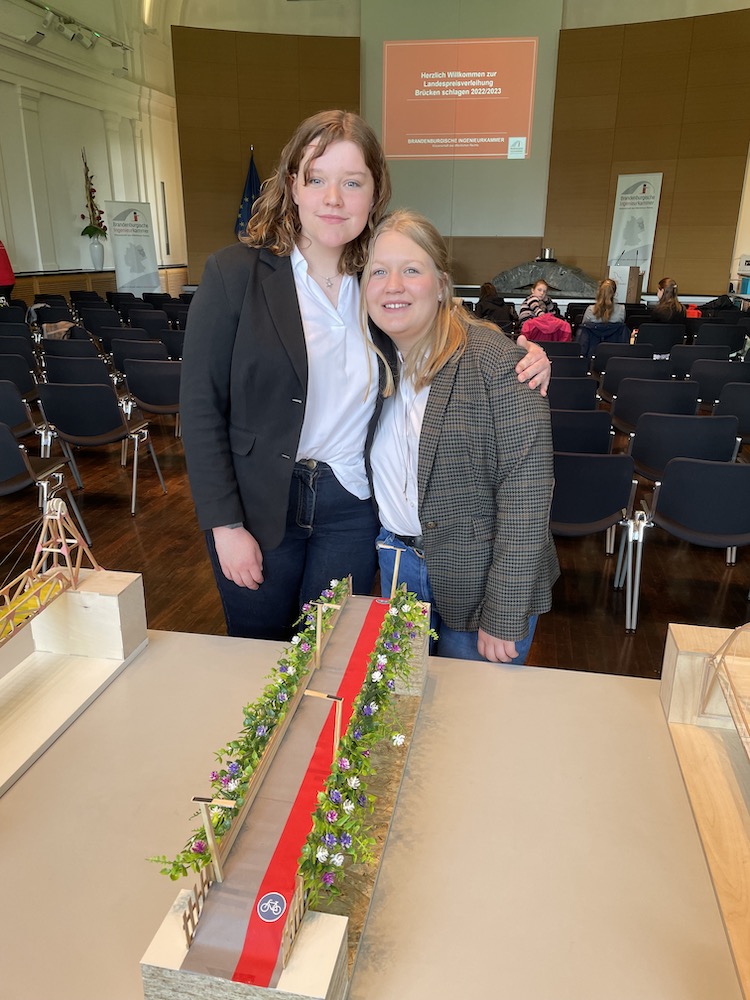 Die konstruierte Brücke unserer beiden Schülerinnen Noemi K. und Lotte K. aus der Klasse 9a kam unter die besten 15 Brücken. Daher wurden sie gemeinsam mit Herrn Franzke zur Preisverleihung nach Potsdam eingeladen.