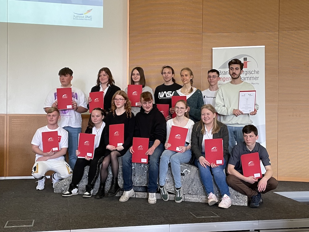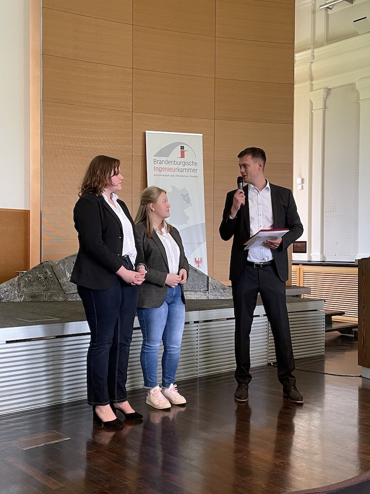 Am 26. April 2023 fand die Preisverleihung zum Schülerwettbewerb „Brücken schlagen“ der Brandenburgischen Ingenieurkammer im Brandenburgsaal der Staatskanzlei in Potsdam statt.