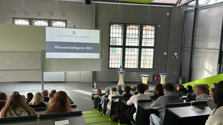 Am 16. Februar 2024 wurde bereits zum 8. Mal der Wissenschaftspreis der Privatschulen Villa Elisabeth an Schülerinnen und Schüler der Abschlussjahrgänge des Gymnasiums und der Gesamtschule Villa Elisabeth verliehen. Nominiert wurden besonders herausragende Arbeiten, aus den Bereichen Naturwissenschaften, Geisteswissenschaften sowie Wirtschaftswissenschaft. Die Nominierten hatten die Möglichkeit, der Fachjury sowie den Gästen in einem wissenschaftlichen Symposium ihre Erkenntnisse vorzustellen sowie Fragen dazu zu beantworten.