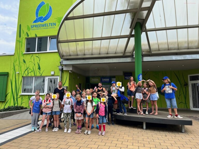 Am 16. Juli 2024 unternahmen die Klassen 3 und 4 der Grundschule Villa Elisabeth einen Ausflug in die Spreewelten in Lübbenau. Im Rahmen und zum Abschluss des Schwimmunterrichts besuchten die Schülerinnen und Schüler der Klasse 3 die dort ansässigen Pinguine. Die Klasse 4 schloss sich diesem Ausflug als Jahresabschluss an. Mit viel Spaß beim Planschen, um die Wette rutschen und im Wellenbad genossen alle Kinder sowie die Begleitpersonen den Tag im Wasser. Was für ein schöner Abschluss des Schwimmunterrichts und des Schuljahres. Nun können die Ferien kommen.
