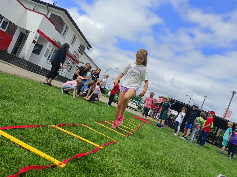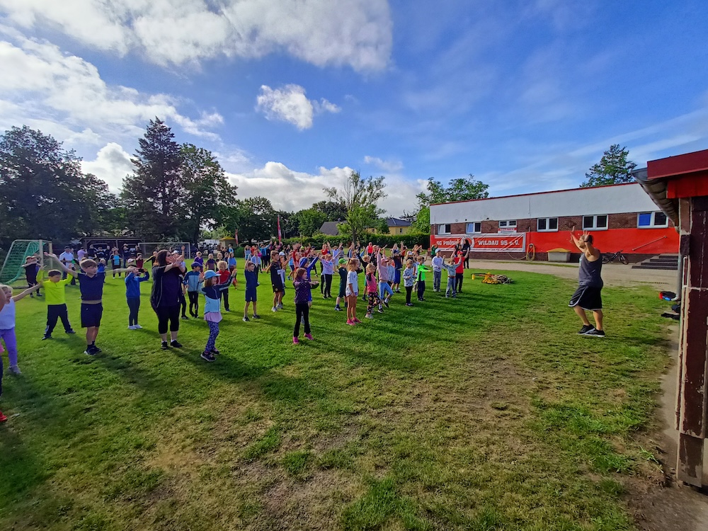 Am Freitag, 31. Mai 2024 fand bei sehr gutem Wetter mit Sonnenschein und hoch motivierten Kindern das traditionelle Sportfest der Grundschule Villa Elisabeth auf dem Sportplatz in Wildau statt. Mit spannenden Stationen wie 50m Sprint, Weitsprung, Ballweitwurf und dem Hindernislauf bereiteten alle sportlichen Aktionen den Kindern Freude und Spaß. Beim Tauziehen, Gummistiefelweitwurf und Seilspringen konnten die Schülerinnen und Schüler ihr Geschick und Talent zeigen.