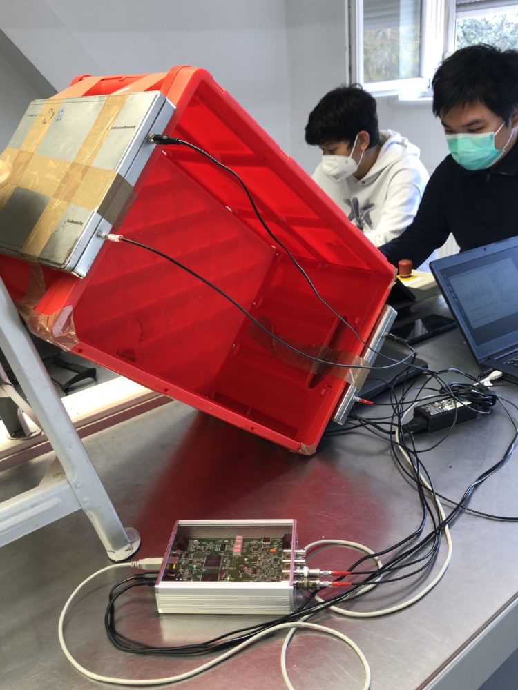 Lennart K., Max W. und Vitus K. (alle 12b) sorgten am 9. November für eine Einführung in die Teilchenphysik in Form eines Crashkurses. Sie stellten die Grundlagen von Elementarteilchen und kosmischer Strahlung sowie die Experimente vor, die später selbst durchgeführt werden sollten. Im dritten Block wurde dann begonnen, die ersten Experimente aufzubauen und erste Messungen durchzuführen.