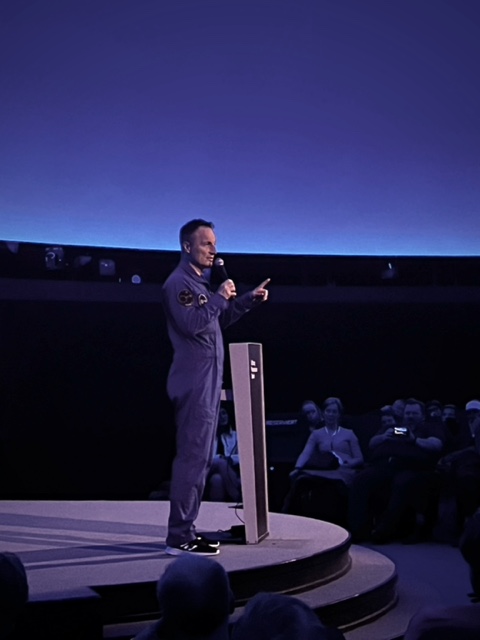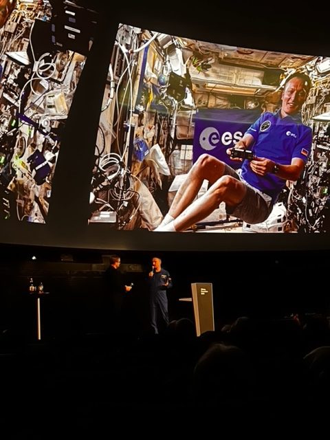 Der zwölfte Deutsche im All, Astronaut Matthias Maurer, war im Zeiss-Großplanetarium in Berlin-Prenzlauer Berg zu Gast und berichtete sehr anschaulich und abwechslungsreich von seinem Einsatz in der Internationalen Raumstation ISS. Maurer befand sich lange 175 Tage im All und war dort mit unterschiedlichsten wissenschaftlichen, aber auch sozialen Aufgaben betraut. Seine frei vorgetragenen Berichte schilderte er auch für uns Nicht-Physiker verständlich und untermalte sie mit atemberaubenden riesigen Fotografien und Videosequenzen. Seine Präsentation wurde deutschlandweit in viele Kinos und Planetarien gestreamt, deshalb war es nochmal etwas ganz Besonderes für uns, direkt unter dem Sternenhimmel an der Planetariumskuppel vor ihm zu sitzen. (Nur die ständig plappernden Kleinkinder in den letzten Reihen haben leider etwas gestört.)