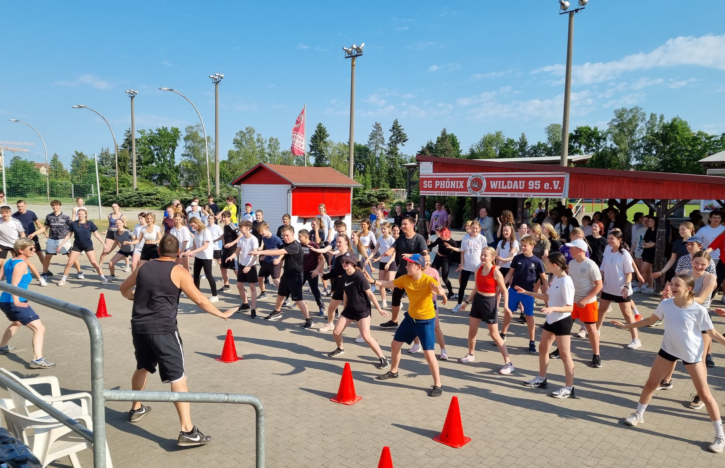 Nach einer gemeinsamen stimmungsvollen Erwärmung wurden zunächst die 800 m- bzw. 1000 m-Läufe absolviert, bevor es dann jahrgangsweise an die verschiedenen Stationen ging.