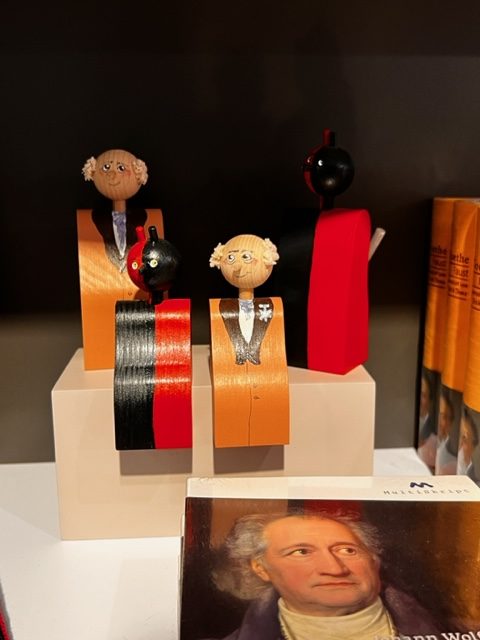 Nachdem wir am ersten Tag wegen der unterschiedlichen Wahlpflichtfächer noch thematisch geteilt wurden und entweder in Richtung Bauhaus-Museum oder zum Liszt-Haus pilgerten, standen am Donnerstag Weimars Legenden Goethe und Schiller im Mittelpunkt. Die Ausführungen unserer Guides waren sehr interessant, nur machte uns das lange Stehen, z.B. im Nationalmuseum etwas zu schaffen. Vielleicht kann man das in den nächsten Jahren etwas auflockern? Die Wohnhäuser von Goethe und Schiller waren da schon abwechslungsreicher, denn man konnte hier und da selbstständig viele interessante Sachen entdecken, wie die Gesteinssammlungen Goethes oder Spielsachen für Schillers Kinder aus der damaligen Zeit. Neu war für uns unter anderem, dass Schiller sein Leben lang Geldsorgen plagten, während Goethe eigentlich von allen Seiten Vermögen, Ämter und Ehrungen nur so zuflossen.
