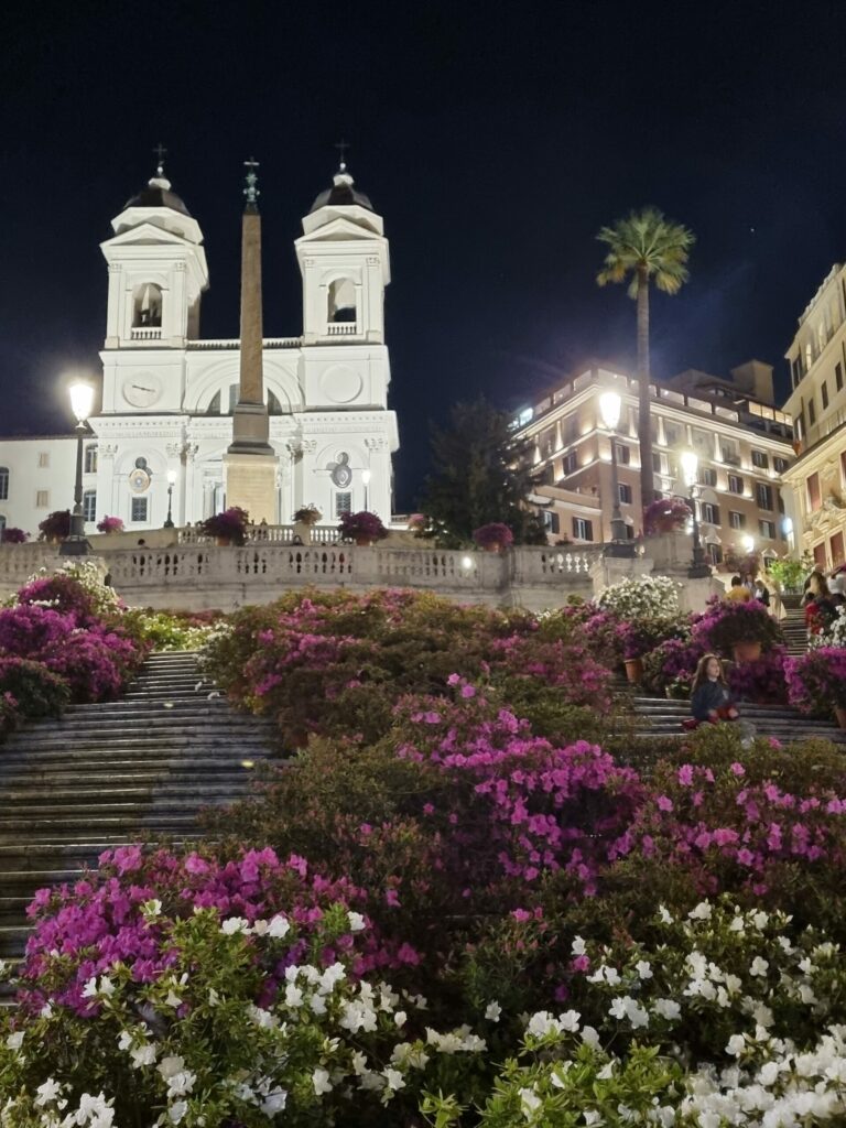 Wir haben alles Wichtige gesehen, uns die Sehenswürdigkeiten erlaufen. In unendlich langer Schlange drängten wir uns über volle Bürgersteige und versuchten nicht zu stolpern auf den antiken schwarzen Pflastersteinen im Forum Romanum und in Ostia Antica. Wir quetschten uns in überfüllte Metros, staunten über das Wissen der antiken Baumeister, die Grandiosität der Barock-Künstler. Erfreut haben wir uns an den wunderschönen Azaleen auf der Spanischen Treppe. Wir hatten auch Glück dabei, denn die Azaleen stehen dort nur zum Stadtgeburtstag am 21. April.