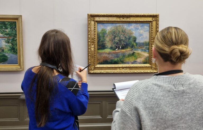 Unsere traditionelle Exkursion führte den Kunstkurs der Jahrgangsstufe 11 wieder einmal in die Alte Nationalgalerie auf der Museumsinsel in Berlin. Schüler*innen informieren Schüler*innen war auch in diesem Jahr das Motto. Die von den Expert*innen ausgearbeiteten Aufgaben wurden vor den Werken der großen Franzosen Manet, Monet und Renoir, des bedeutenden Berliners Max Liebermann, des Münchners Franz von Stuck und des geheimnisvollen Schweizers Arnold Böcklin diskutiert und die Besonderheit der künstlerischen Handschrift dieser Maler herausgearbeitet und miteinander verglichen. Zwischen den idyllischen Landschaften der Impressionisten und den schwermütigen Bildern der Symbolisten fand jeder sein Lieblingskunstwerk. Und weil sich neben den Impressionisten und Symbolisten noch weitere großartige Gemälde bedeutender Künstler in der Alten Nationalgalerie befinden, gab es auch dazu natürlich noch Entdeckungsaufgaben. Selbstverständlich wurde auch Caspar David Friedrich ein Geburtstagsbesuch abgestattet.