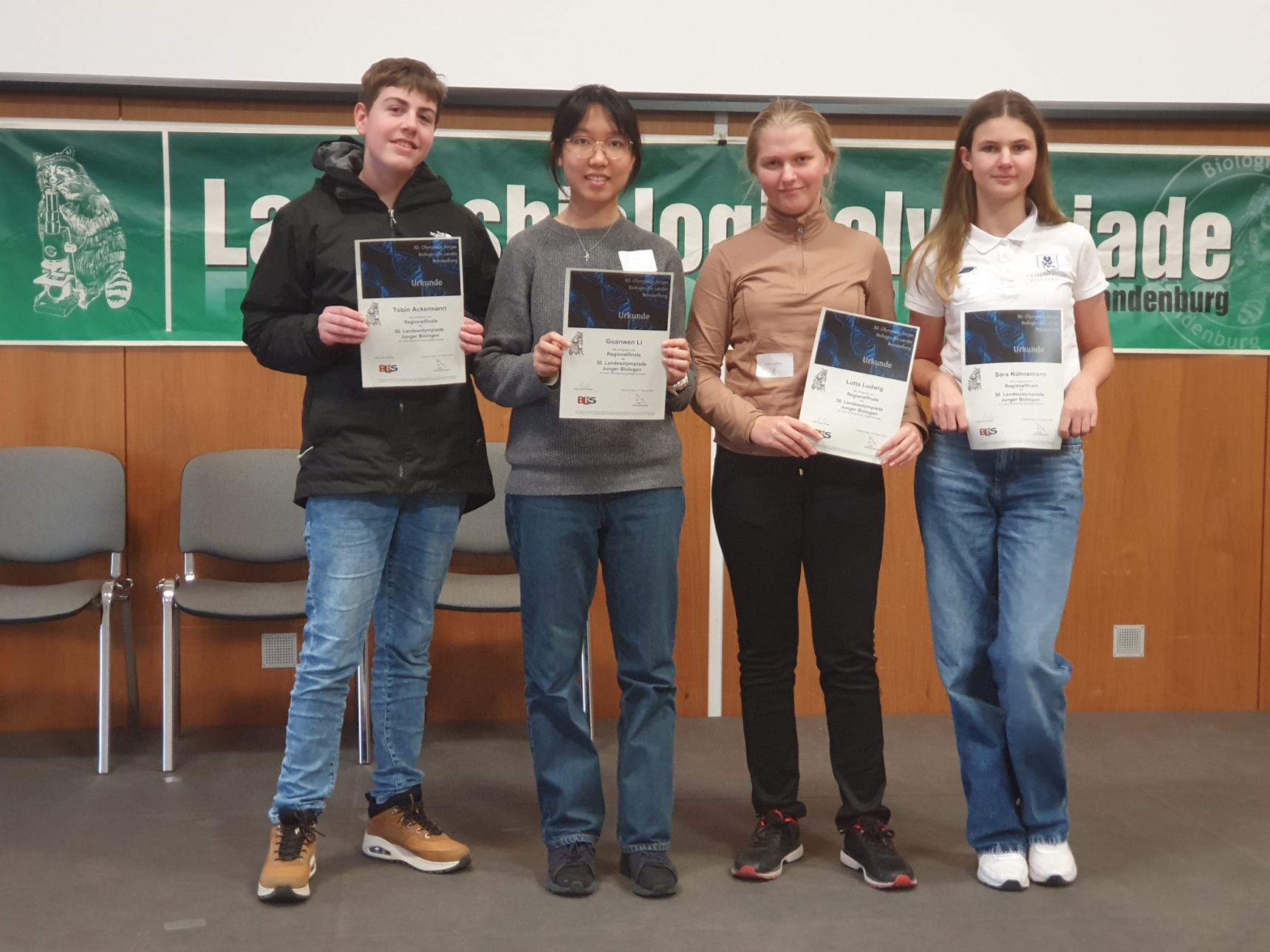 Wir freuen uns, von der erfolgreichen Teilnahme unserer talentierten Schülerinnen und Schüler an der Regionalrunde der Biologie Olympiade zu berichten! In diesem Jahr haben drei Schülerinnen und Schüler des Gymnasiums Villa Elisabeth sowie eine Schülerin der Gesamtschule Villa Elisabeth in Frankfurt (Oder) ihr Wissen und ihre Fähigkeiten in der Biologie unter Beweis gestellt.