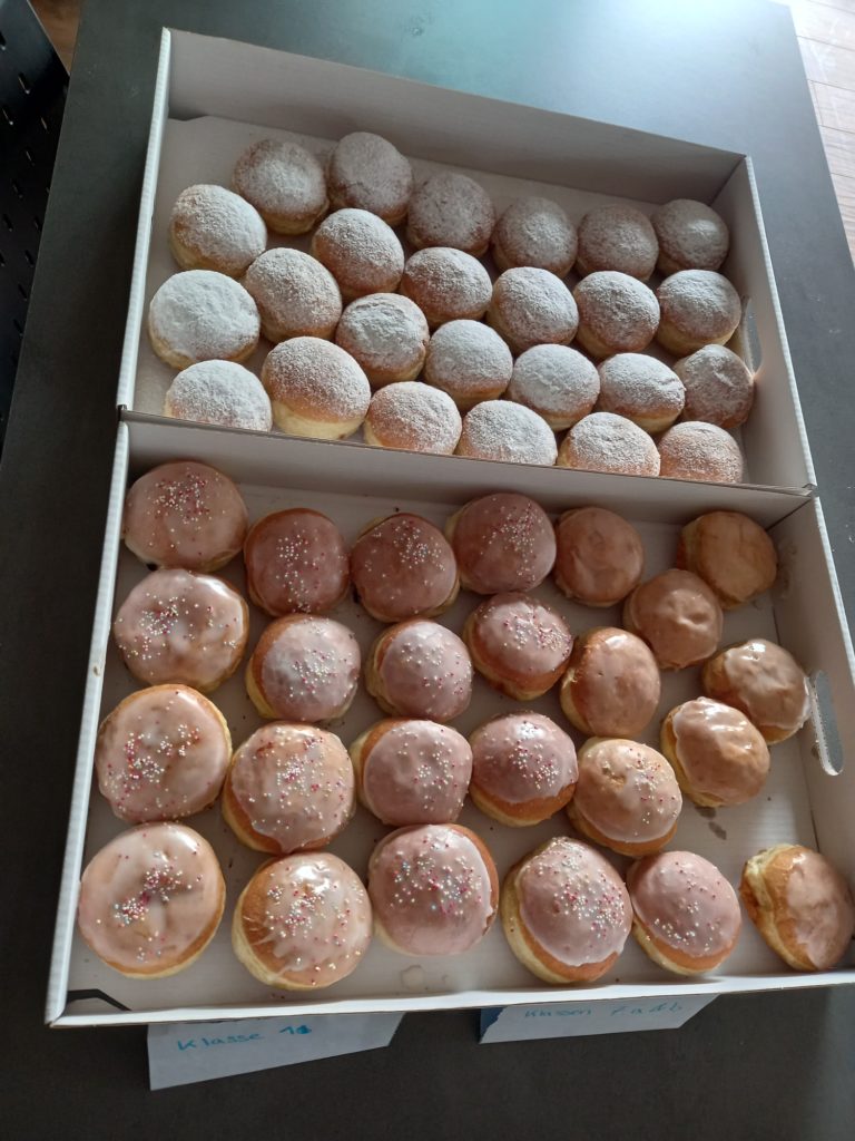 Es ist an der Villa Elisabeth Tradition, dass der Schulträger für alle Schülerinnen und Schüler sowie Lehrkräfte Pfannkuchen ausgibt und damit die Karnevalszeit einläutet.