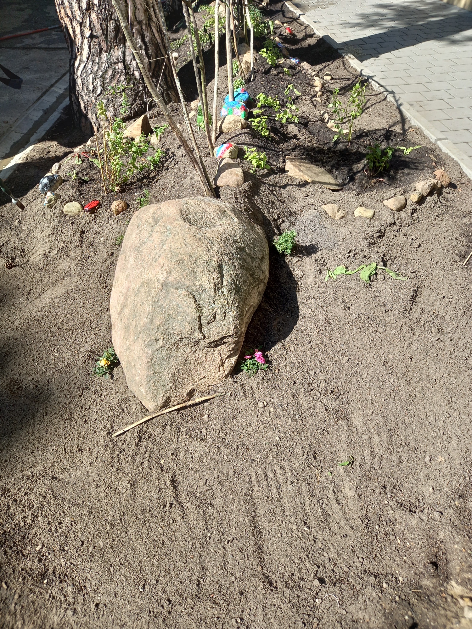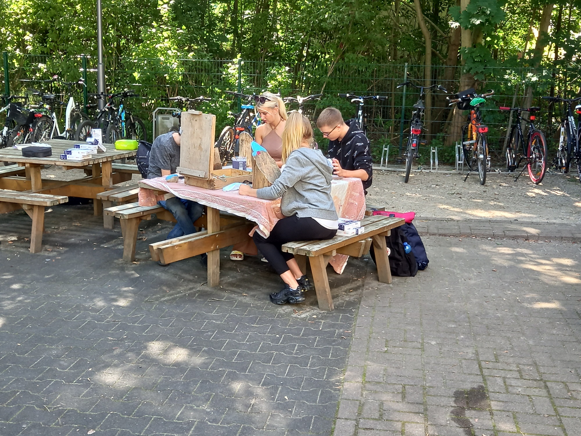 Wir verschönern unseren Schulhof unter Anleitung von Herrn Gütter und Frau Grahle.